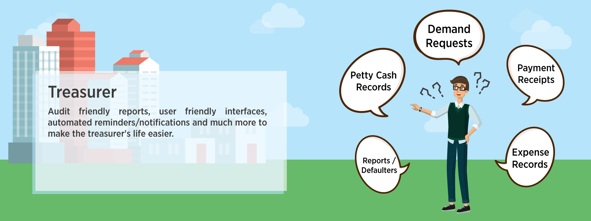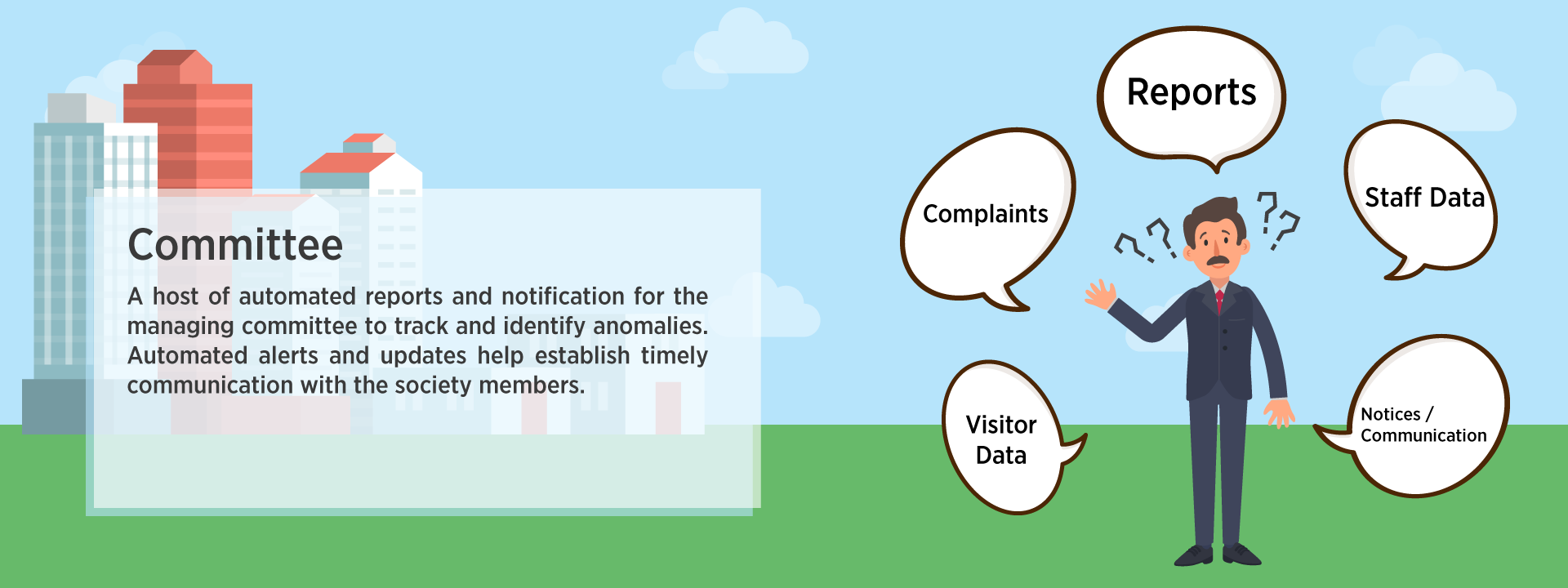 Society Notices management, Reminder Service for pending dues and AMC calendar.
